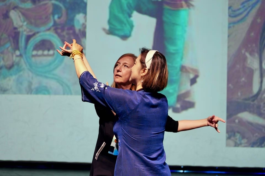北京舞蹈学院邓佑玲副院长基于北京舞蹈学院民族舞蹈实践基地的调研与展演实践,提供舞蹈保护、传承与创新发展的北舞经验,为全球舞蹈保护提供了参考。敦煌表演艺术家史敏以工作坊和主旨发言的双重实践,探讨了敦煌舞蹈文化的构建与传承,分享了从壁画、文化交融到当代职业舞蹈建构的路径和美学。