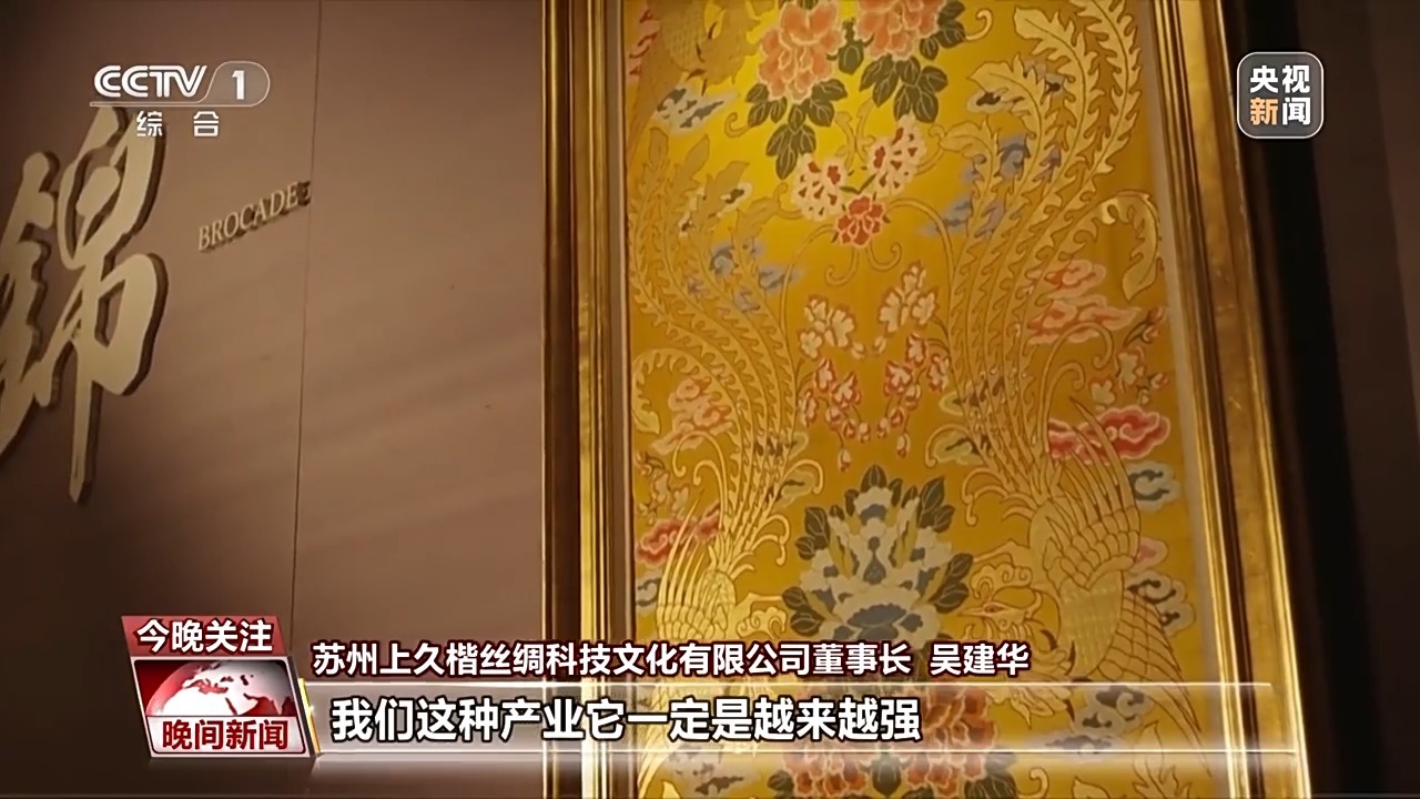 苏州上久楷丝绸科技文化有限公司董事长 吴建华:它背后的文化的东西,才是真正打动人的。我们的文化自信越来越强,我们的产业一定是越来越强。