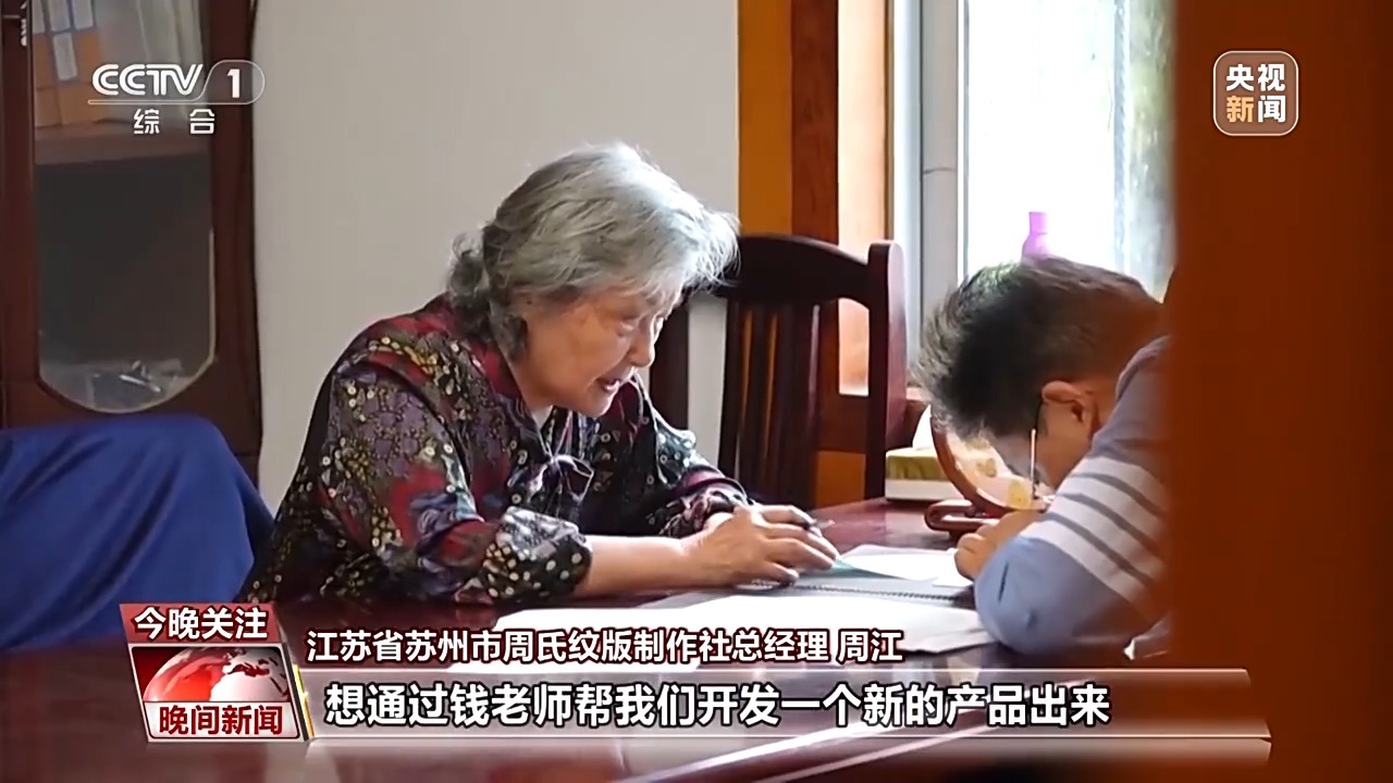 苏州丝绸博物馆的一侧,一栋不起眼的小楼里,同样热闹忙碌。86岁的宋锦织造技艺国家级代表性传承人钱小萍,几乎每天上午都来这里研发宋锦、指导学生,并接待各地的访客。这些客人都是为了宋锦的研发慕名而来。