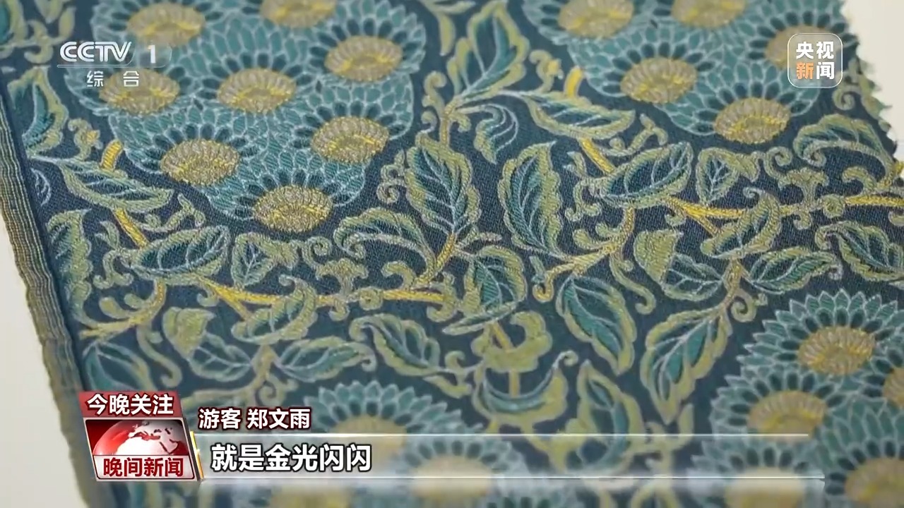 游客 郑文雨:用的明明是那种蚕丝丝线,但是它织出来的感觉就像描龙画凤的那种感觉,就是金光闪闪,超乎现在的一些想象。
