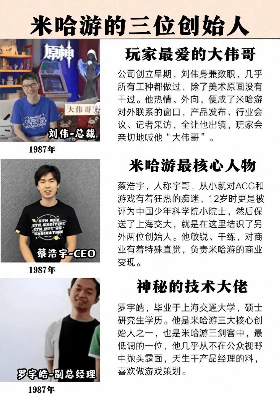 这和在2011年创办米哈游的3位上海交通大学学生刘伟、蔡浩宇、罗宇皓的二次元情怀,密不可分。