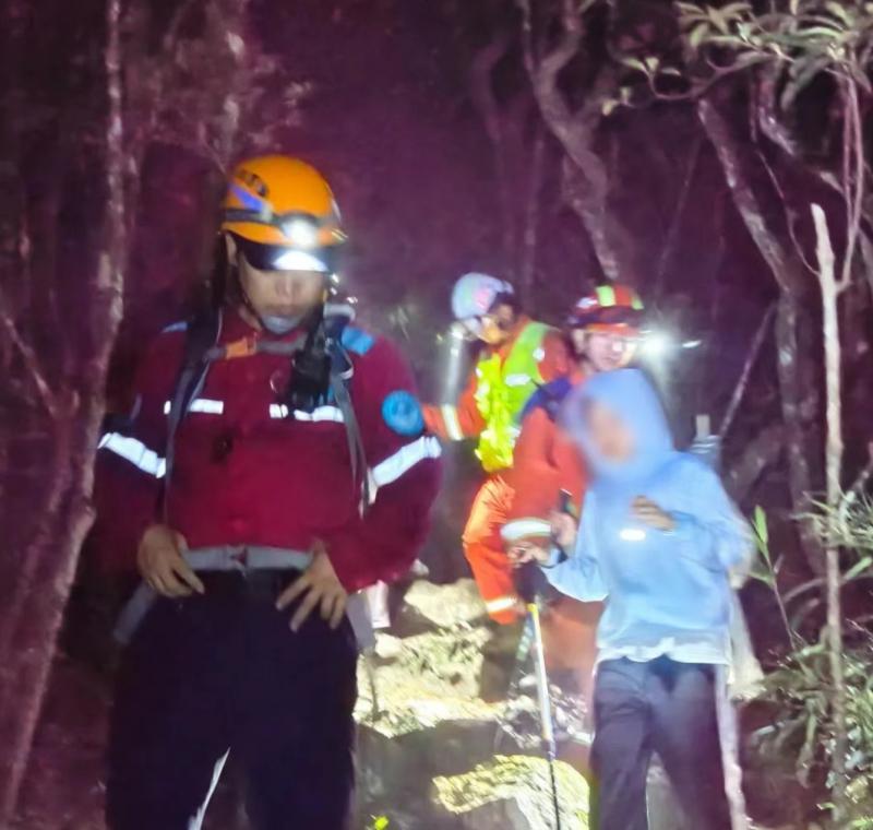 尽管救援人员对山路地形较为熟悉,但行进仍困难重重。3个半小时后,救援队伍终于抵达被困点。短暂休整后,众人开始下山。沿途山路陡峭湿滑,每一步都需警惕坠落风险,救援人员全程高度紧绷,全力护送被困人员安全撤离。