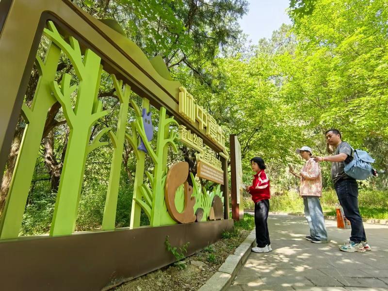 五月初夏,草木葱茏,香山公园以得天独厚的自然风光与趣味盎然的亲子体验,诚邀家庭游客共度假日时光。这里不仅是历史名园,更是一座“天然亲子乐园”,让孩子在自然中奔跑嬉戏,家长于山林间放松身心,开启一段温馨的假日旅程。香山公园中路特别推出“林中漫步”自然科普步道,小径全长500米,分为春、夏、秋、冬四个科普展示组,通过图文、绘画、实物等形式,全面展示香山独特的动植物资源和园林科普知识,家长可以带着孩子一起体验自然,探索科学。