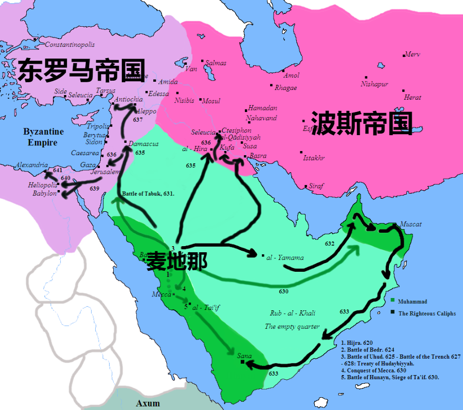 正是两大帝国的战争使得欧亚传统商路被迫转移到了更为安全的阿拉伯半岛西岸,商人们在欧亚大陆之间做生意,途经这里需要阿拉伯人的骆驼运送货物,还需要食物和淡水补给,商业的兴旺为麦加和麦地那的崛起奠定了基础。