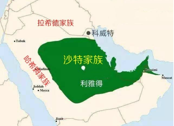 ▲阿拉伯半岛上的三大家族三足鼎立