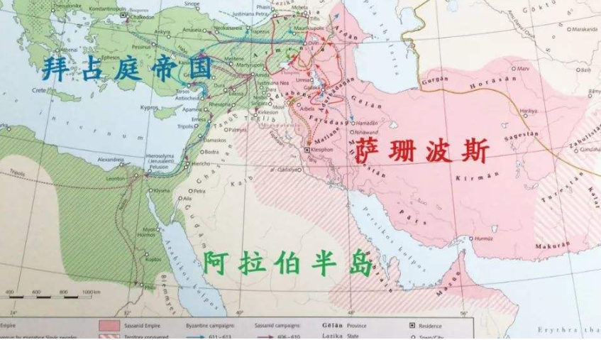 而阿拉伯半岛北边有两个强大的帝国,一个是东罗马帝国,一个是萨珊波斯帝国。这两大帝国为争夺霸权发生了长达几百年的战争。双方势均力敌,谁也无法消灭对方。
