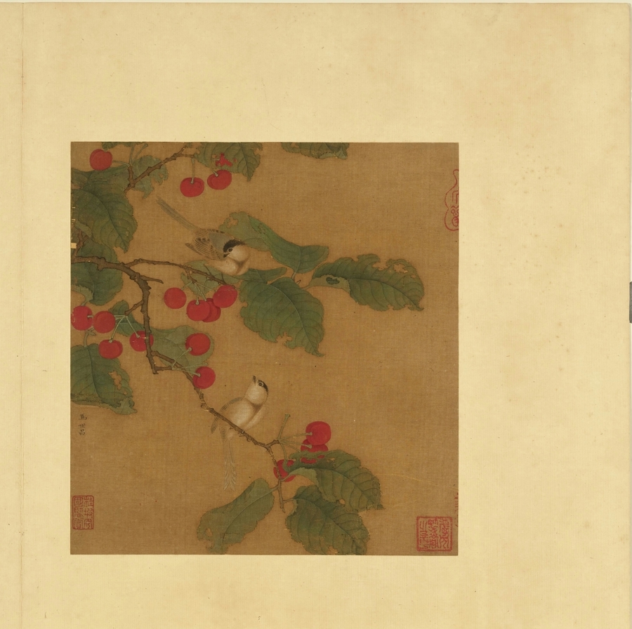 除了盛开的繁花,初夏时节亦有新鲜上市的水果,给人们带来味觉上的享受。唐代诗人张祜写有《樱桃》一诗:“石榴未拆梅犹小,爱此山花四五株。斜日庭前风袅袅,碧油千片漏红珠。”这首诗是描写樱桃的名作。首句写出石榴花苞未绽、梅子尚小的物候特征,且以“山花”来指代樱桃,颇有一种于喧嚣市井中畅想山野之趣的意味。“碧油千片漏红珠”极为传神地描绘出樱桃叶片和果实的色泽、质感、形态。品读此句,眼前似乎浮现出碧绿的樱桃叶在阳光下闪烁,鲜红的樱桃果实娇嫩诱人的场景。