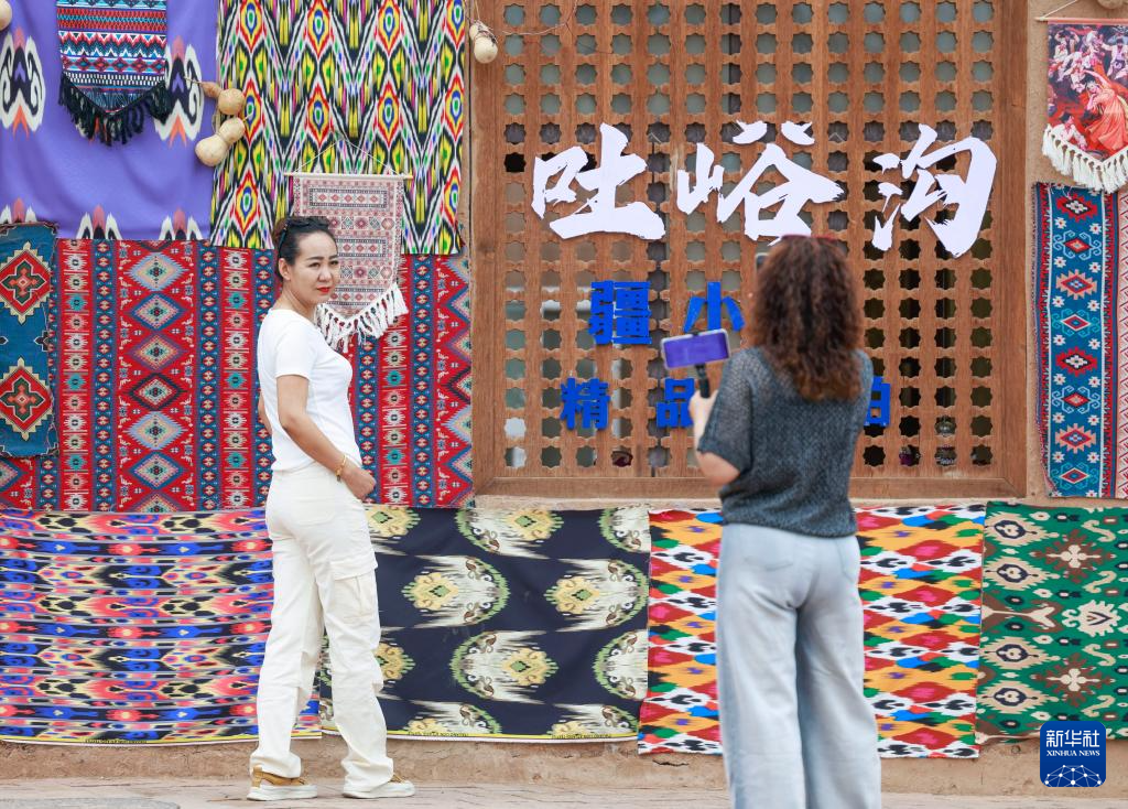 5月4日,游客在新疆吐鲁番市鄯善县吐峪沟景区游玩。