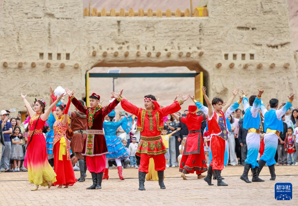 5月4日,演员在新疆吐鲁番市鄯善县吐峪沟景区表演民族歌舞。