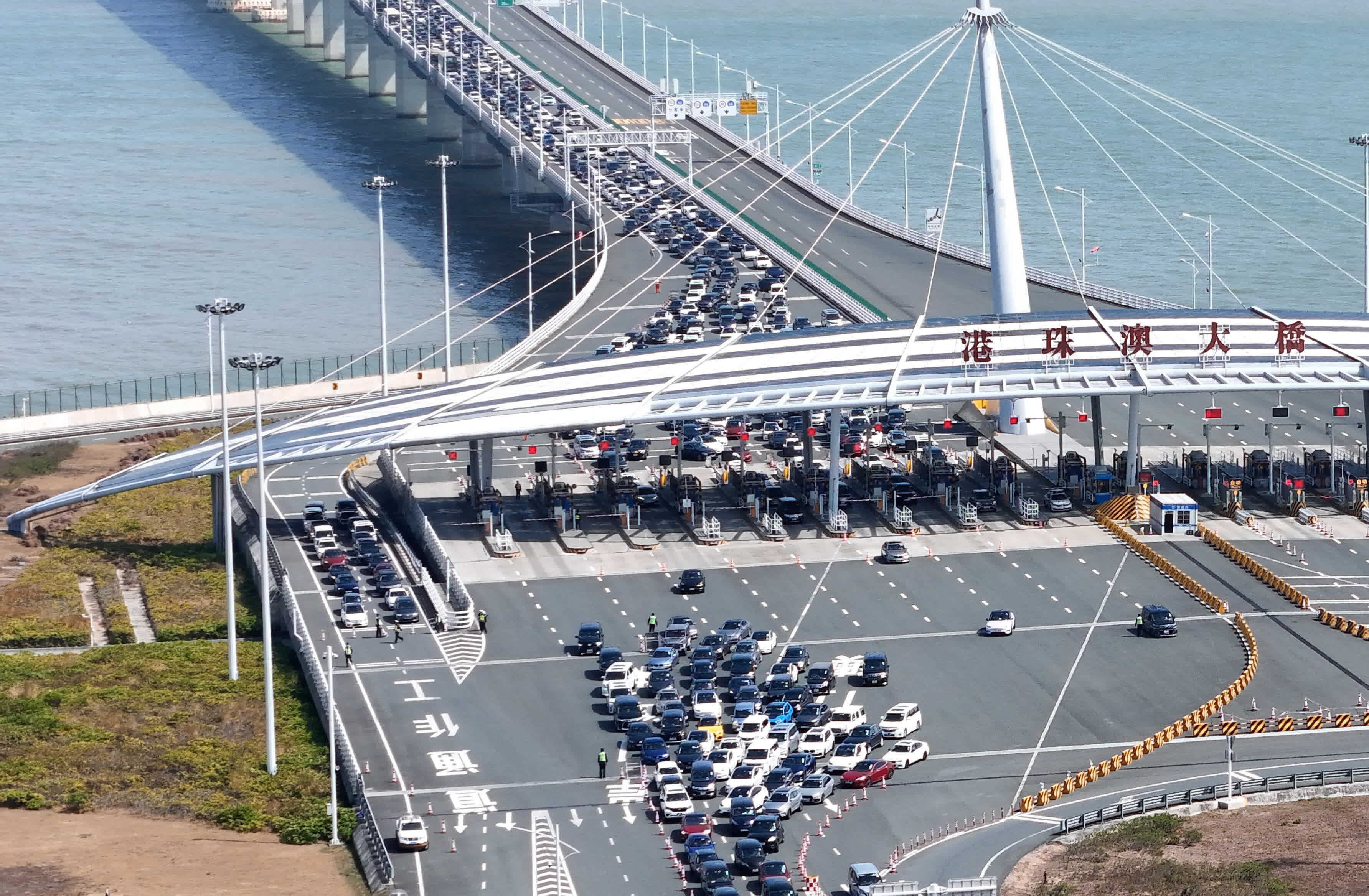 据珠海边检总站港珠澳大桥边检站统计,5月4日经港珠澳大桥珠海公路口岸出入境的车辆首次超2.7万辆次,其中小客车达2.6万辆次。(资料图)