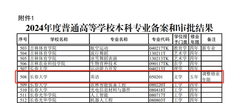 近日,教育部公布2024年度普通高等学校本科专业备案和审批结果。其中,长春大学的英语专业,学制由4年调整为5年。此次调整标志着,又一所高校宣布:英语专业延长学制。