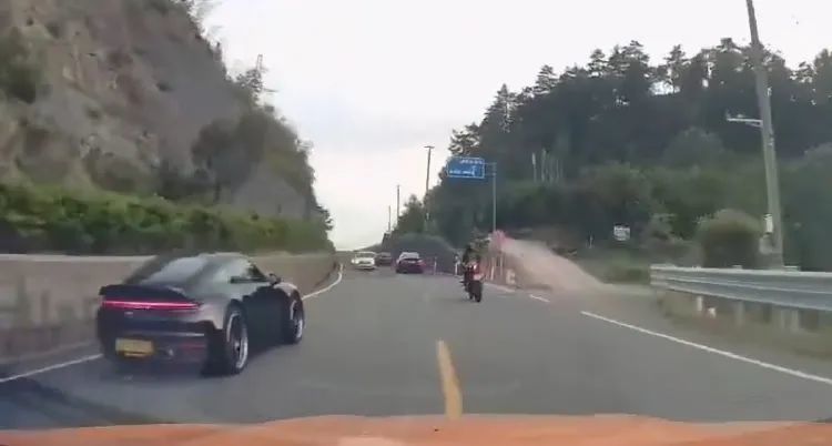 就在昨天,一队人马在山路上行驶,其中有摩托车和跑车。本来大家按照限速正常行驶,突然一辆保时捷不知为何逆行超车,完全不考虑当前的交通状况。