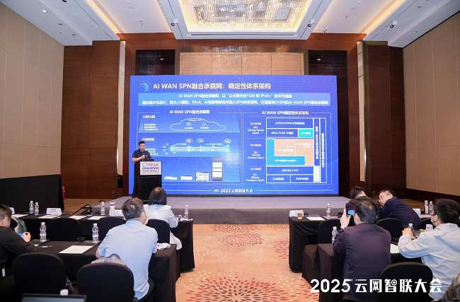 2025年4月24日在云网智联大会 “确定性网络/广域高性能网络论坛”上,华为数据通信产品线SPN解决方案首席架构师魏家道发表《AI WAN SPN融合承载网络确定性承载技术》主题演讲——通过AI WAN SPN创新架构,从设备、联接到网络智能体运维多维度阐述AI赋能网络,打造行业数智化全新体验。