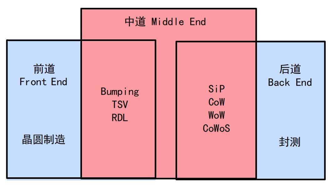 后面会提到的TSV和RDL,也是中道工序。