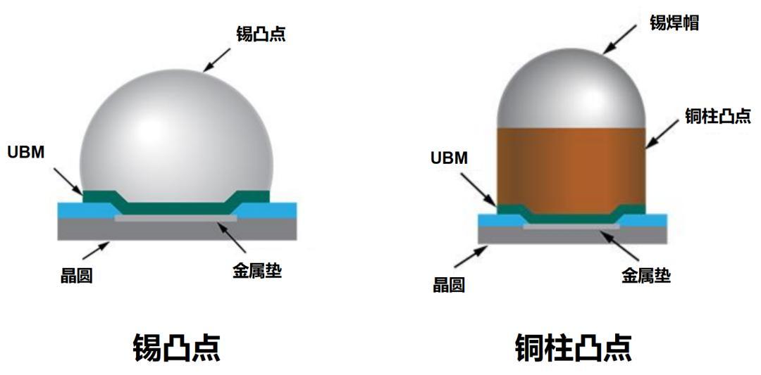 金 凸点的成本高。相比之下,铜柱凸点的电性能、散热性能比较好,制备难度均衡,成本也比较低,所以用得比较多。