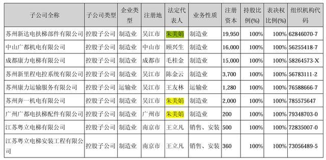 2012年,朱美娟身兼苏州新达电扶梯部件有限公司、苏州奔一机电有限公司和广州广都电扶梯配件有限公司的法定代表人。