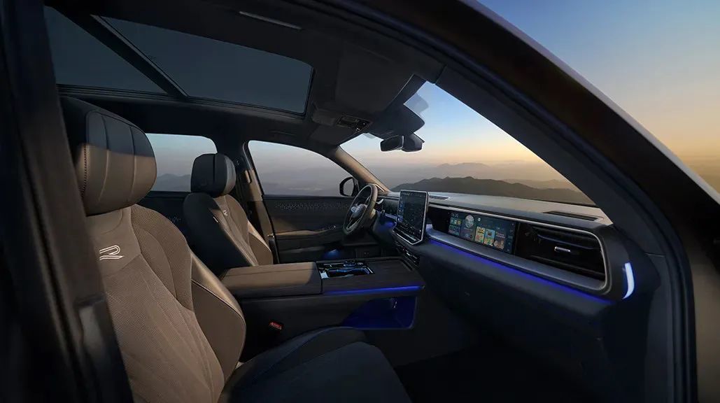 而差价3万元的纵横版,相比探索版则是增加了360度的全景影像,前排座椅增加加热通风记忆和按摩,后排座椅也有了加热,车内氛围灯也给到了30色可选,我觉得最重要的是前后排的玻璃在这个配置上都给到了多层的隔音玻璃,天窗也变成 可开启的全景天窗,而且副驾驶还给上了11.6英寸的副驾驶娱乐屏和主副驾驶的腿托,搭配上女王座椅,车内的乘坐舒适性可以说是上了一个层次。