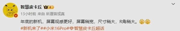 【CNMO科技消息】近日,数码博主频繁爆料小米即将发布的旗舰机型小米16 Pro的设计细节。综合多方消息,新机将重点升级屏幕尺寸与显示效果,采用更窄边框与大R角设计,但屏幕可能会略微变宽。