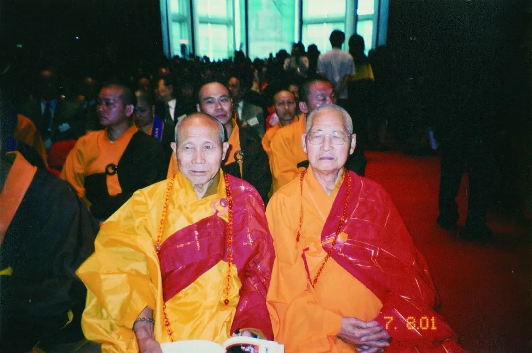 2004年5月护送佛指舍利在中国香港供奉,5月26日四月初八佛诞日与悟谦法师(右)一同参加佛指舍利祈福大会开幕典礼