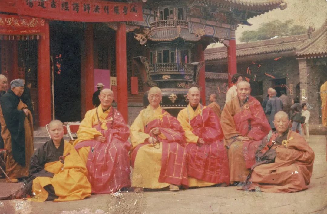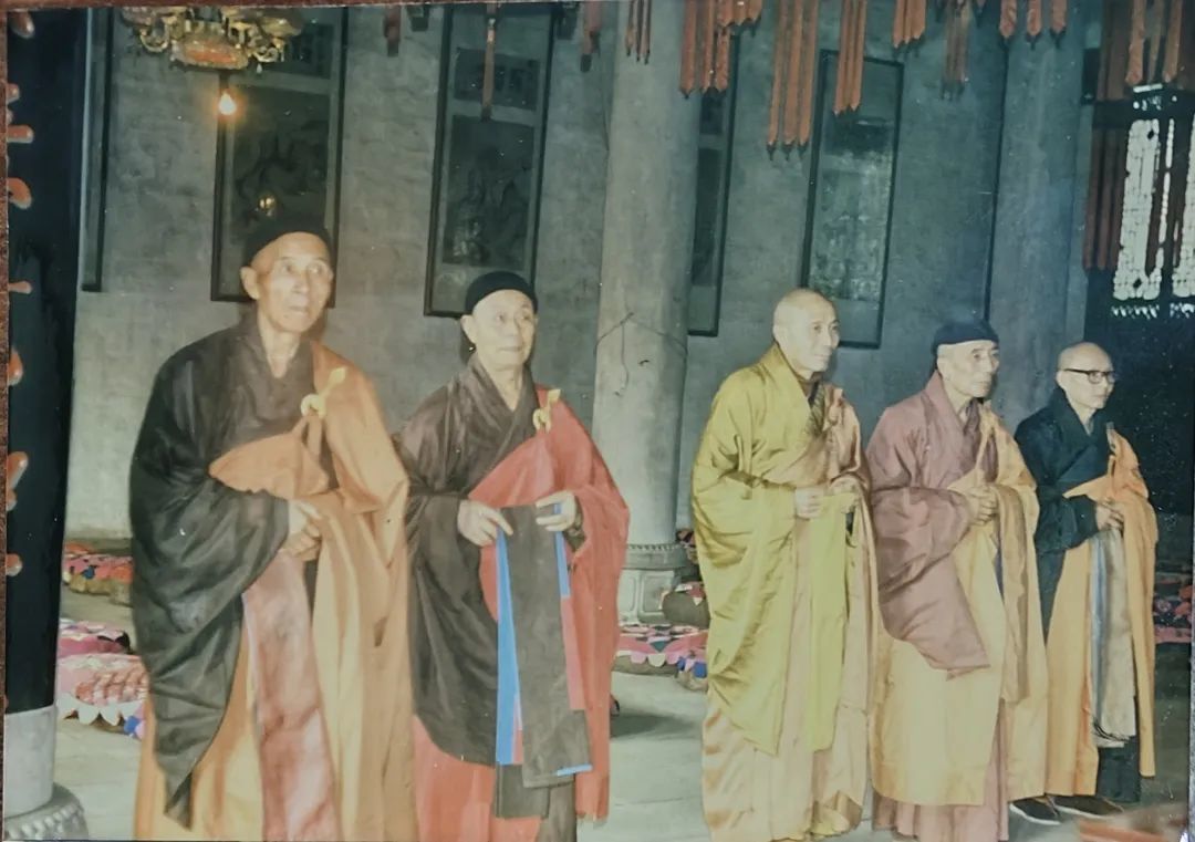 1988年10月30日,四川成都宝光寺遍能大和尚升座法会(果忍老和尚左一、净天长老中、乐山乌尤寺镇元法师右一)