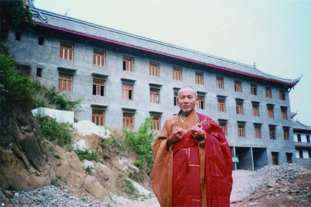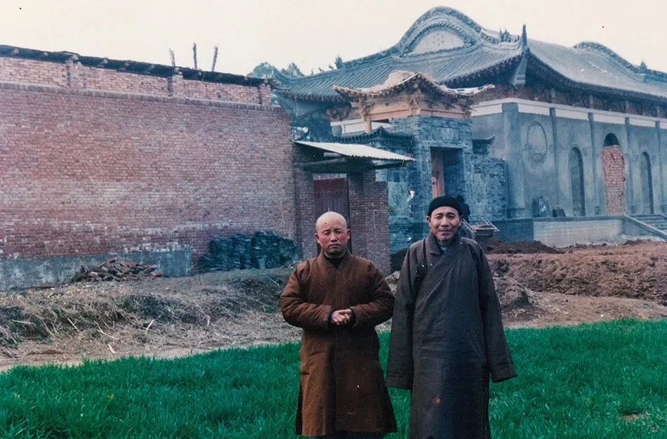 为报父恩,1986年复建陕西扶风大明寺,开办大僧道场,与弟子澈性法师(左)