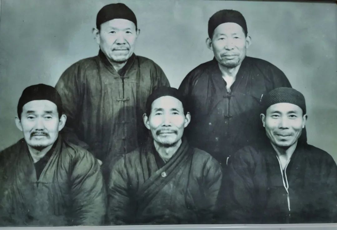 1978年改革开放后,协助政府贯彻宗教信仰自由政策,清理落实各大寺院教产(前排左起:澄观法师、宏莲法师、净天法师 后排左起:常慧法师、净一法师)