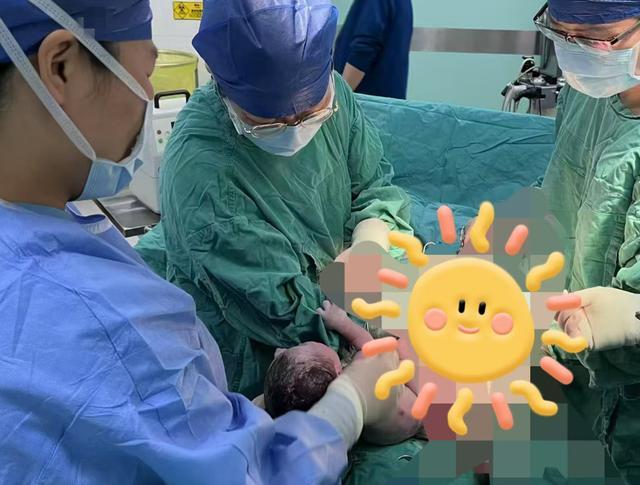 现场医护人员默契地放缓了动作节奏。麻醉师程云高副主任医师举起手机记录下这帧暖心画面:身着手术服的医生微微俯身,另一只手轻托着婴儿,新生儿蜷曲的手指在手术服上留下细小的褶皱。