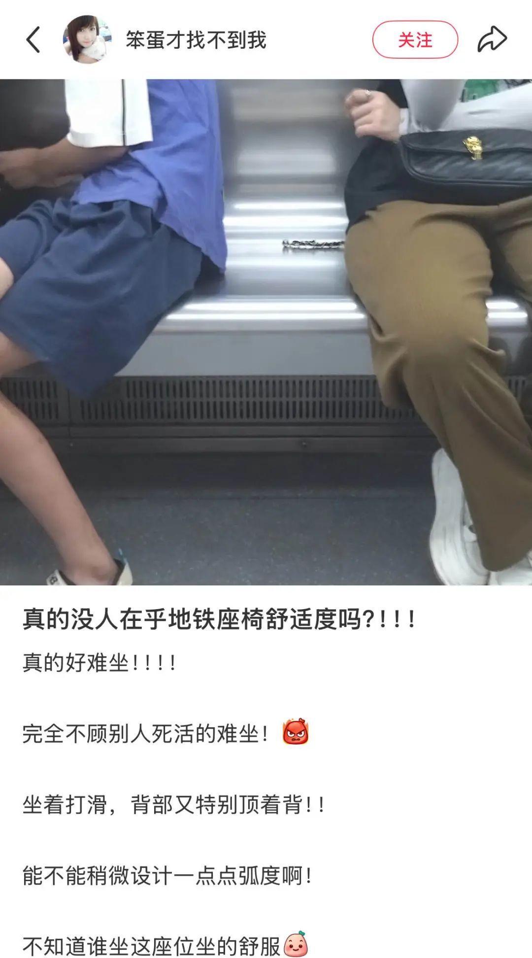 地铁座椅设计“效率至上”,只能被迫牺牲掉一些舒适性,但随着城市交通需求的多元化,乘坐的舒适性也被纳入考量范畴。