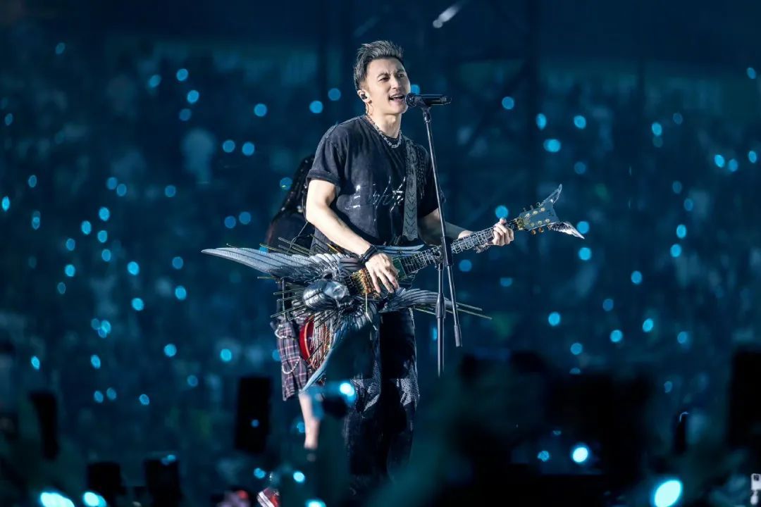 谢霆锋愈老愈型,据说这次演唱会上的吉他是一个日本大师花三年时间做的。