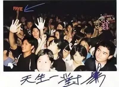 谢霆锋迷恋王菲时,给粉丝签名,看见照片里有写着王菲的灯牌,直接圈画出来,写上“天生一对”。