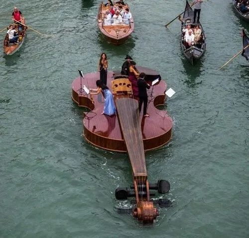 你见过在水上航行的小提琴吗?一把巨大的小提琴,穿越在威尼斯的水道中,整座水城都惊呆了!