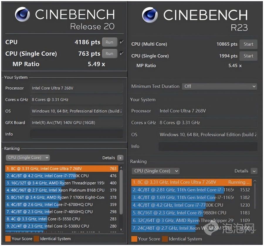 CPU的另外两款常用测试软件,CINEBENCH R20的单核成绩为1017pxs,多核性能为5581pxs。CINEBENCH R23的单核成绩为2659pxs,多核性能为14487pxs,在性能方面的表现较为出色,应对日常的办公和娱乐场景游刃有余。