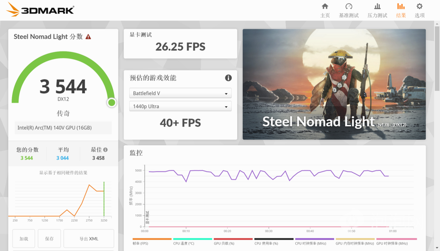 在3DMARK面向轻薄本的测试项目Steel Normad Light测试当中,Dell Pro 14 Premium的最终成绩为3544分,虽然是一款轻薄型笔记本电脑,但是也具备了一定的游戏能力。