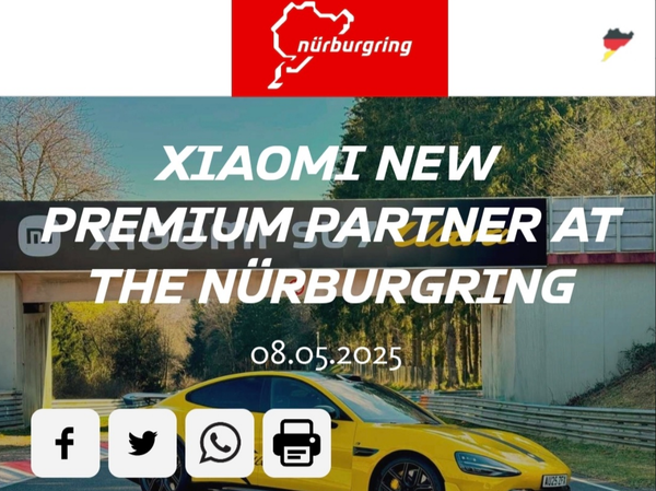 【CNMO科技消息】5月9日,CNMO注意到,据纽北赛道官方网站信息,小米集团与德国纽博格林赛道(Nürburgring)正式签署战略合作协议,成为这一全球最长永久性赛道的“顶级合作伙伴”。根据协议,小米不仅将通过赛道广告设施强化品牌曝光,更深度介入纽博格林的车辆研发体系。