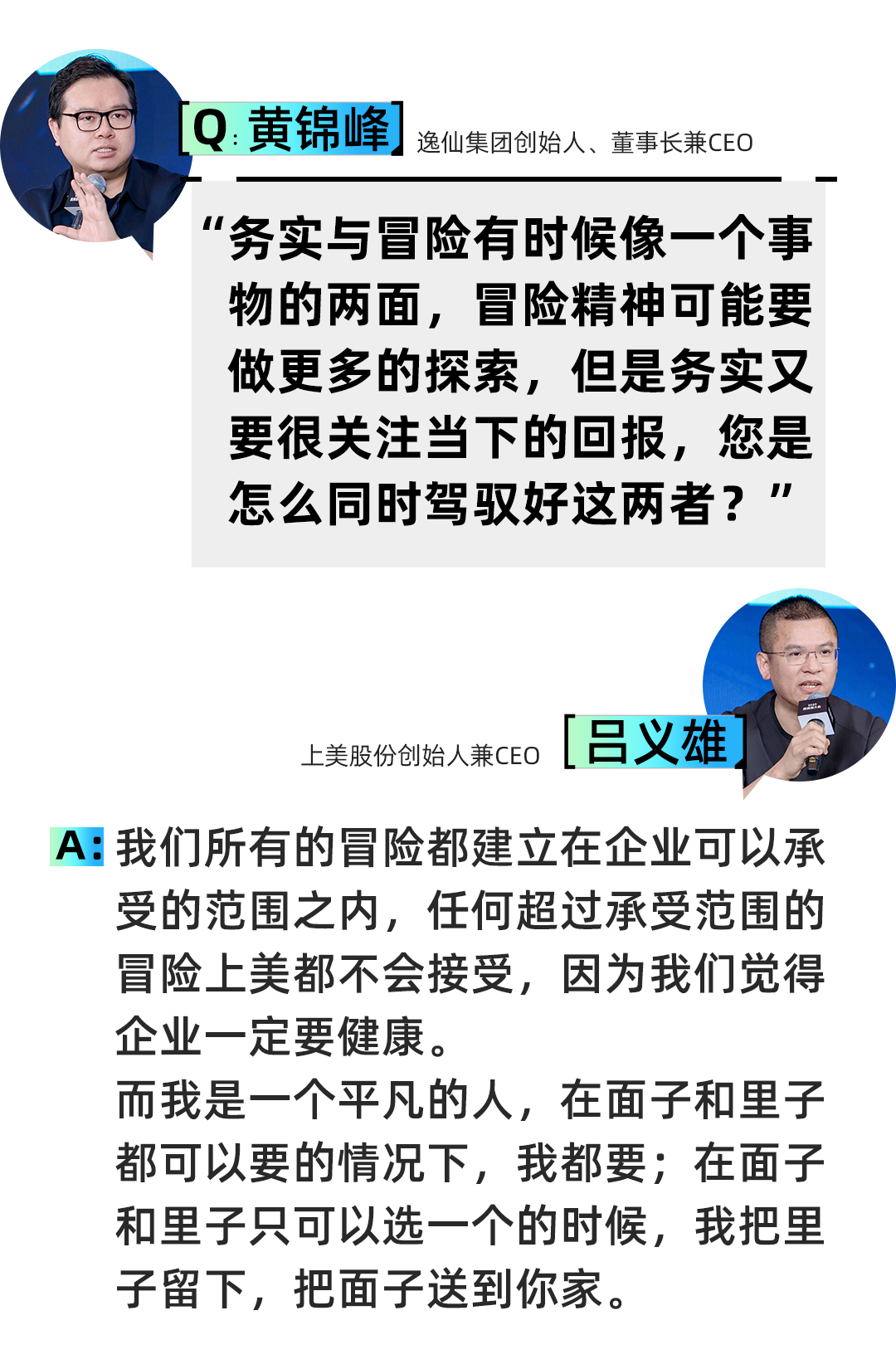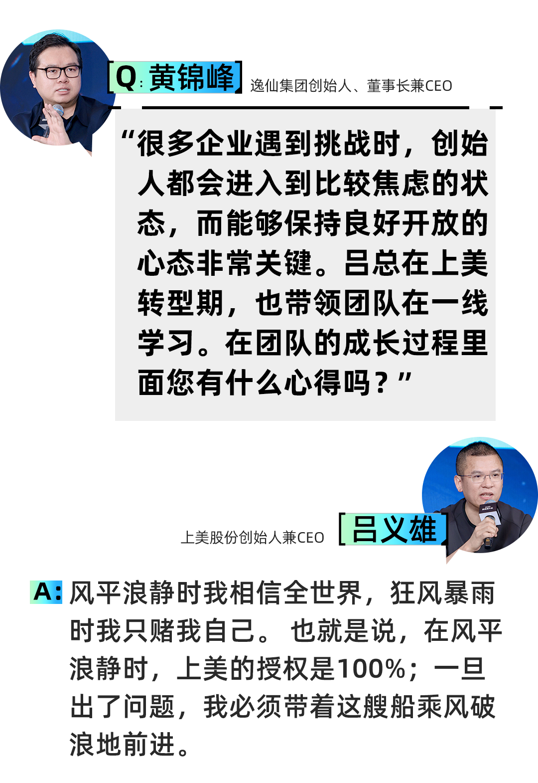 现场,黄锦峰从轻松话题切入,层层递进,围绕上美股份的发展历程、运营策略、企业文化等核心议题,与吕义雄展开了一场干货满满的思想碰撞。聚美丽摘录了部分引起现场热烈掌声的精华。