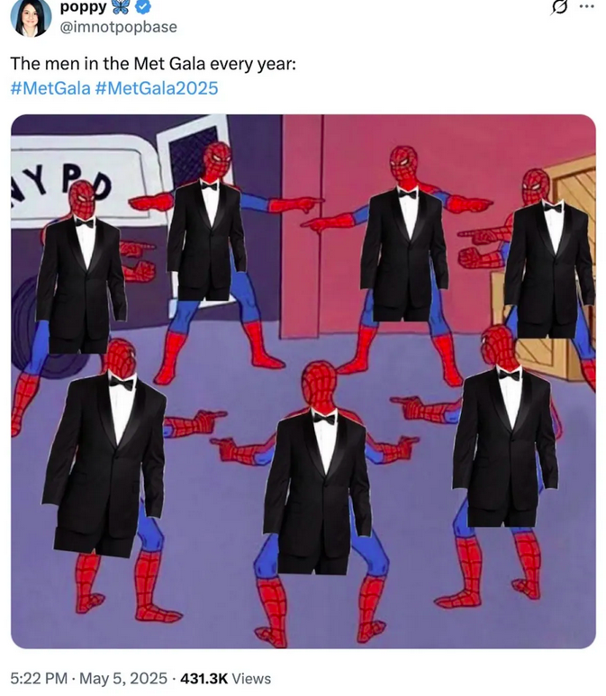 相较之下,本届盛会展现的集体想象力匮乏,不仅折损了主题的深刻内涵,更让那些在历史长河中用服装书写自由意志的灵魂为之叹息。当资本新贵们将饱含文化密码的着装主题简化为浅薄的红毯游戏时,真正的讽刺或许在于:我们已失去嘲笑的权利。