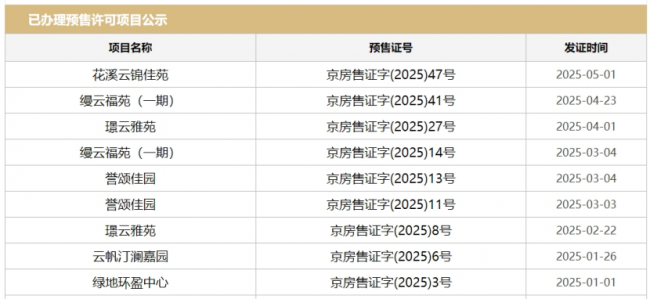 在北京市住房和城乡建设委员会官网上,以“通州”为关键词进行检索发现,2025年以来已办理相关预售许可证的有9个。