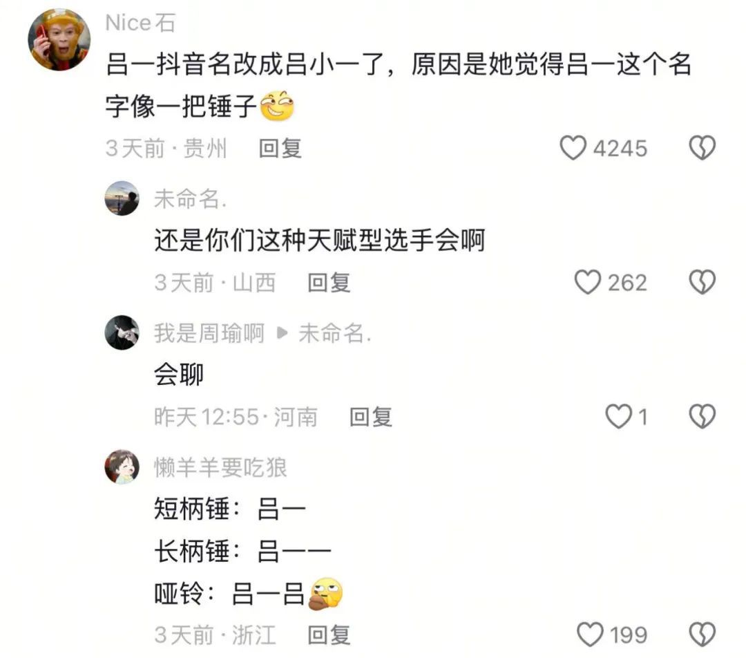 而吕一的视频评论区,也全都是激情玩梗的网友。