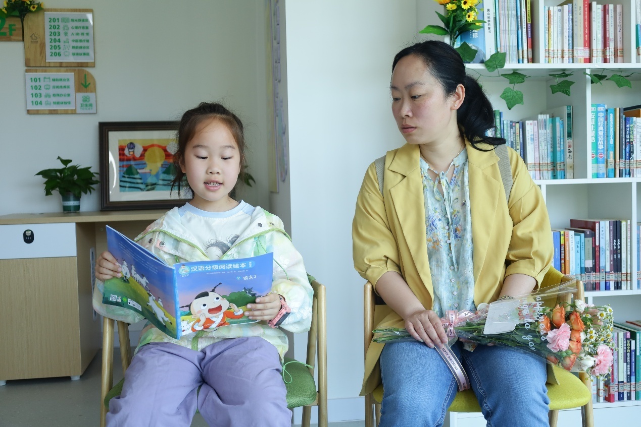 万女士陪女儿共读故事。 图/九派新闻实习记者 杜文添