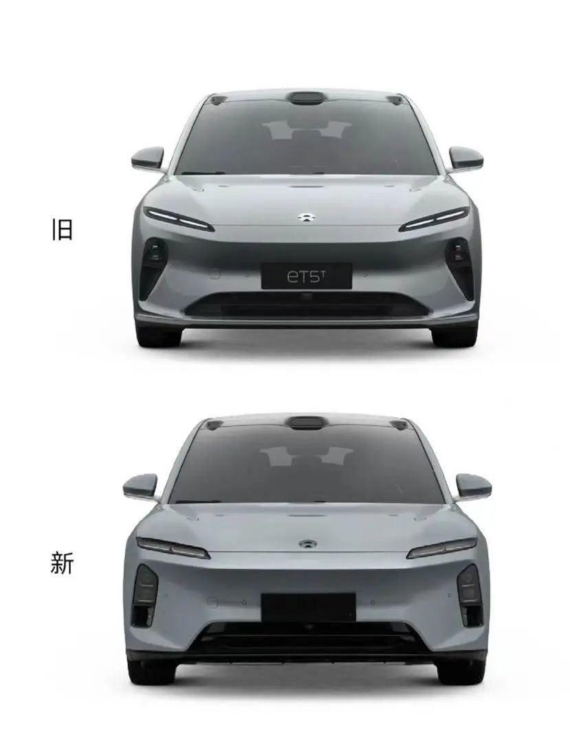 首先改款后的ET5基于NT2.5平台打造,在设计、空间、驾控、智能等方面都迎来了升级。新车的前脸处的通风口从三角形变为方形,头灯尺寸也变得更大,进气口尺寸略小,整体造型相比于现款更加有棱有角。