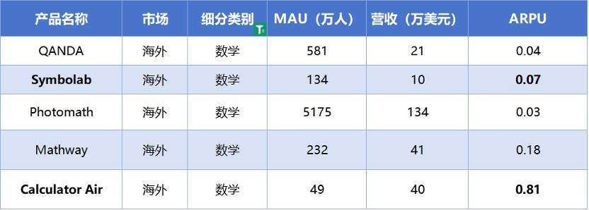 上述产品以计算器功能为主要的标签,并叠加 AI 解题能力为用户提供全方位的数学解题体验。尽管功能相近,但在收入表现上,后者却是前者的 4 倍。