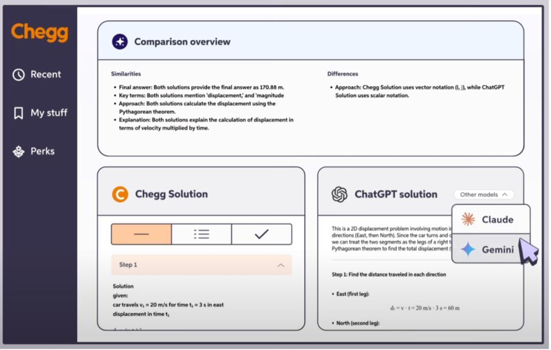 Chegg 的“一守一攻”:上线 AI 解题比对、AI 闪卡功能