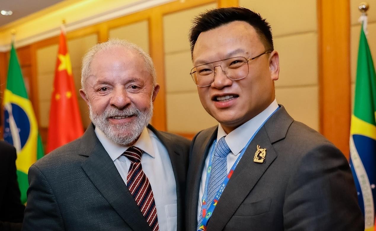 巴西总统卢拉(左)会见瑞幸咖啡联合创始人、首席执行官郭谨一(右)