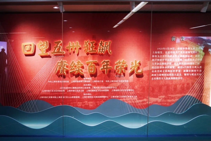 为纪念五卅运动100周年,致敬五卅先烈,传承红色基因、赓续红色血脉,由上海市龙华烈士陵园(龙华烈士纪念馆、上海市烈士纪念设施保护中心)、上海市徐汇区文化和旅游局、上海市徐汇区总工会、上海市普陀区文化和旅游局、上海地铁公共文化发展中心联合主办的“回望五卅狂飙 赓续百年荣光”正在徐家汇地铁站“上海地铁文化艺术长廊”、普陀区图书馆等地巡展。