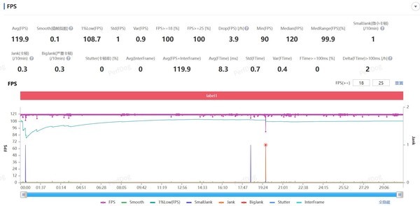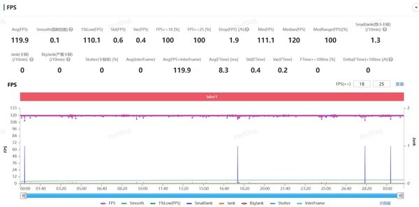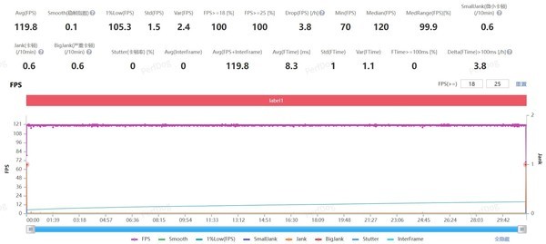 《崩坏:星穹铁道》可以实现120帧超帧+1.7K超画双开,在30分钟测试中,一加平板 2 Pro的平均帧率可以达到119.9帧,1%Low帧108.7帧,可以说是稳稳拿捏这款重载游戏,给平板游戏玩家吃了一颗定心丸。而且,《崩坏:星穹铁道》的最高分辨率可以达到1.9K,带来了画质更清晰的游戏体验。