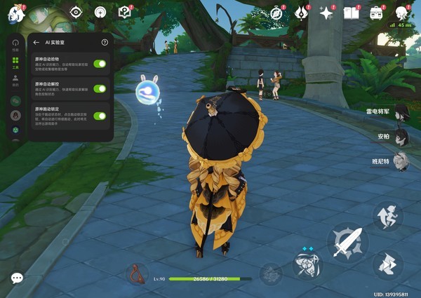 一加还上线了智能游戏助手功能,在AI实验室中可开启自动拾取、自动解控、跑动锁定等功能,跑图探索世界更方便。