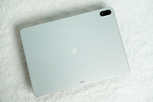当打开包装把一加平板 2 Pro取出来的时候,能够非常明显感觉到这是个“大家伙”,但是整体轻薄度控制的非常好,不会因为太重而压手。它的机身厚度只有5.97mm,整机重量控制在675g,相比于上一代更薄。背部整体采用铝合金材质,而且和中框是一体化的设计,带来了出色的机身质感。在左右两侧中框,各有两部分扬声器开孔,内置了Hi-Fi级八扬声器系统,由4个高音超宽频单元和4个中低音高功率单元组成,使得每一次播放声音都悦耳。
