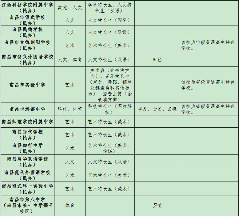 一是优化招生流程。为便于家长和考生从容选择目标学校,今年将先公布城区普通高中特长班(生)招生项目,待我市总计划确定后,再行公布各校特长班(生)招生项目的计划数。体教融合培养类(体育类)、艺术类(含音乐、舞蹈、美术、书法、传媒)专业测试时间由市教育局统筹,安排在初中学业水平考试文化考试之前进行;学科类特长生专业测试时间由市教育局统筹,安排在初中学业水平考试文化考试之后进行;人文、科技类特长生由招生学校结合自身实际确定专业测试时间。各校专业测试时间一经确定,应及时面向社会公布,原则上不安排专业加测和补测。