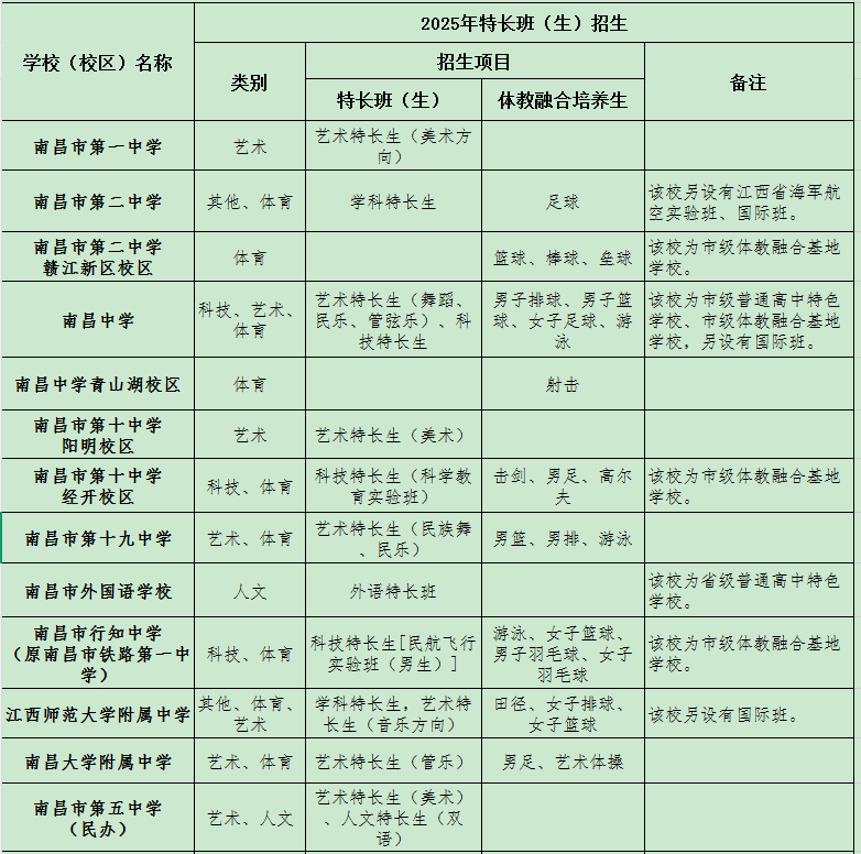 四是规范工作程序。各招生学校要成立以校长为组长、分管副校长为副组长的特长班(生)招生工作小组,统筹负责特长生招生的组织、协调及实施等工作。各招生学校要按照要求制定本校2025年特长班(生)招生方案,明确报考时间及要求、录取分数要求及录取办法、专业测试安排及成绩公布、报考咨询方式等内容,经市教育局审核备案后,于特长班(生)招生考试前通过官方网站、微信公众号等形式向社会公布。2025年起,体教融合培养类(体育类)和艺术类专业测试考官统一由各学校在市教育局公布的体育、美育专家库“高校及专业团体”中随机抽取,并全程参与测试、评(阅)卷和统分等各个环节。特长生专业测试结束后,各招生学校应及时将专业测试结果及入闱考生名单向社会公布。特长班(生)招生过程中,各招生学校应务必保持电话畅通,及时回应家长关切,接受社会监督。对考生提出的异议,市教育局相关部门将认真查实,保障学生合法权益。