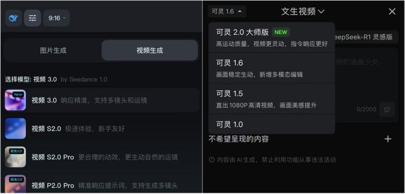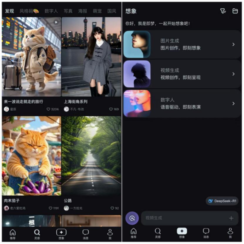 经过近一年发展,即梦AI和可灵AI,从视频模型性能到产品功能,正逐步趋同。这种趋同的直观表现之一,便是对DeepSeek R1的接入。